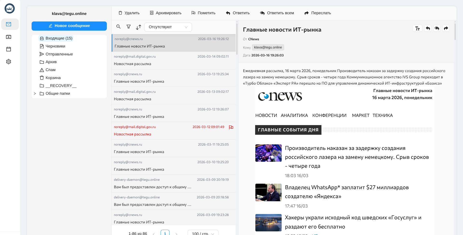 Почтовый сервер TEGU с клиентом TIMON версии 1.62 опубликован